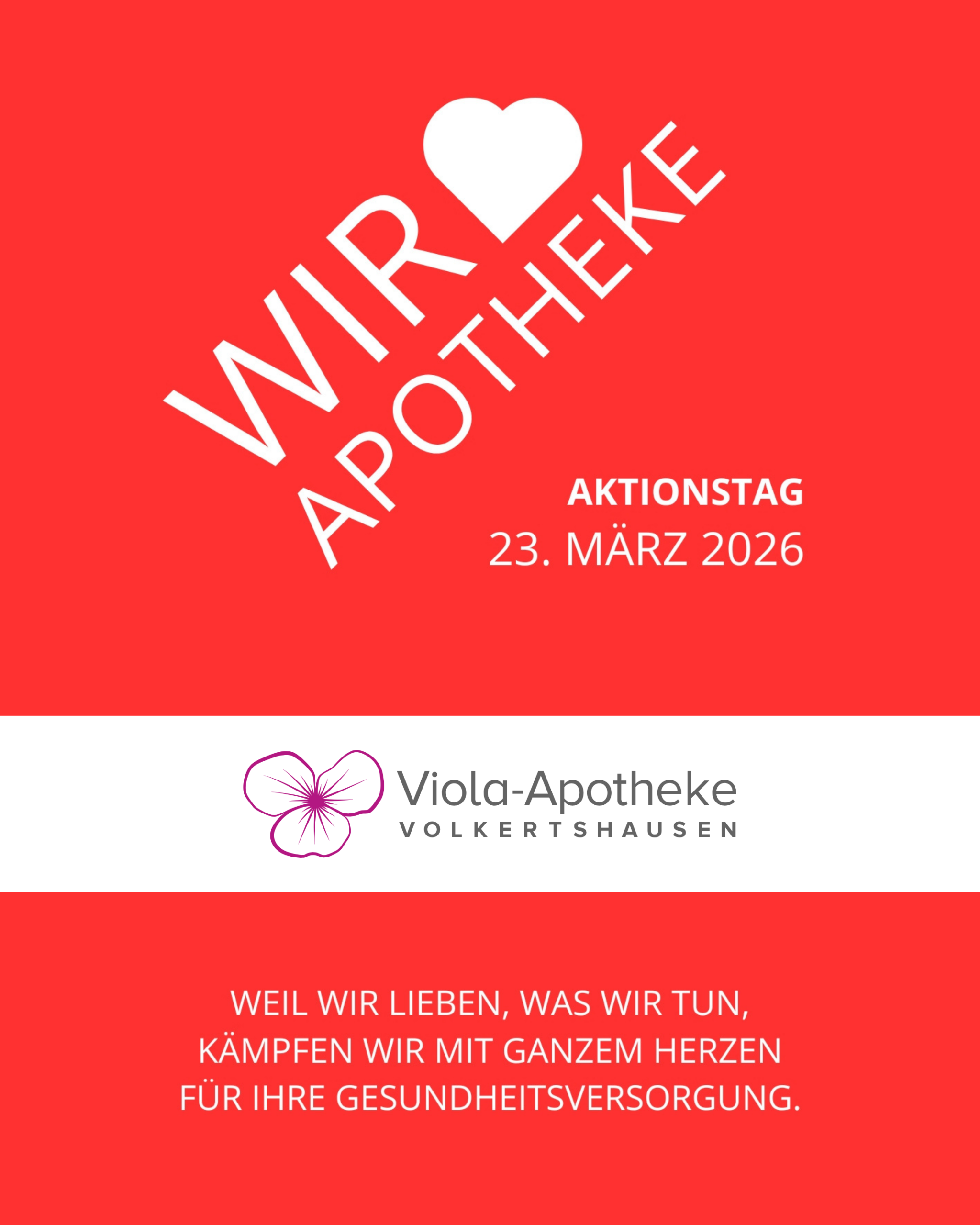 Für die Apotheke vor Ort und für unseren Berufsnachwuchs. Deshalb bleibt unsere Apotheke am Montag, den 23.03., geschlossen – damit sie auch in Zukunft weiter offen stehen kann. Wir bitten…