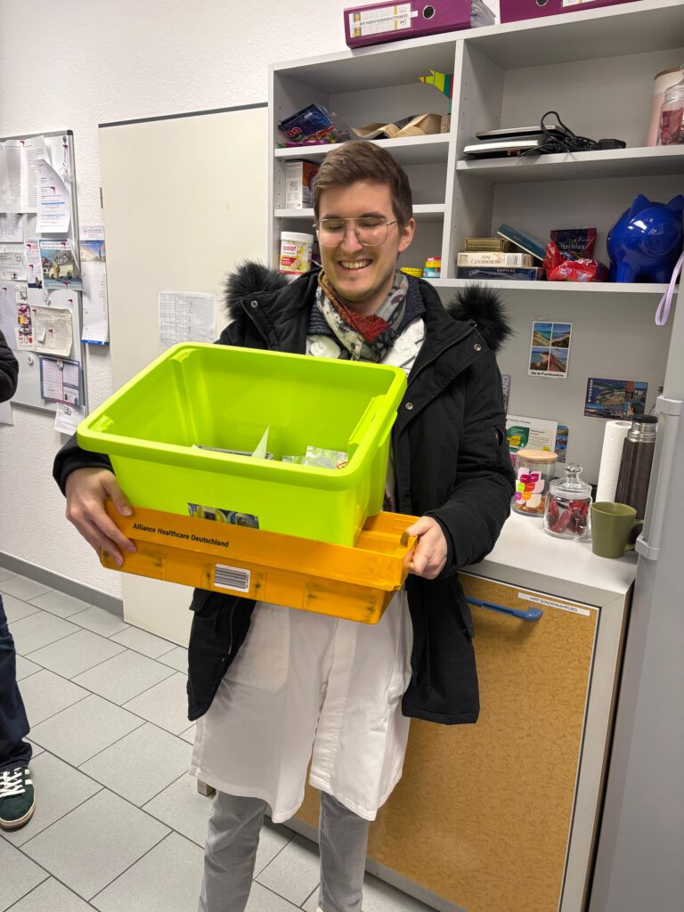 Im Rahmen seines Wahlkampfes ist Nico Klemann der Einladung von Stéphanie Haas-Komp gefolgt und hat einen Nachmittag in der Apotheke mitgearbeitet: von der Unterstützung beim Wareneingang, über teils „erschreckende“ Einblicke in die Lieferengpässe, bis hin zu besonderen Kundengesprächen und der Auslieferung mit dem Botenfahrer hat Herr Klemann aktiv mitgearbeitet. Sogar die Herstellung von Kapseln für ein Kind hat er beobachten dürfen.