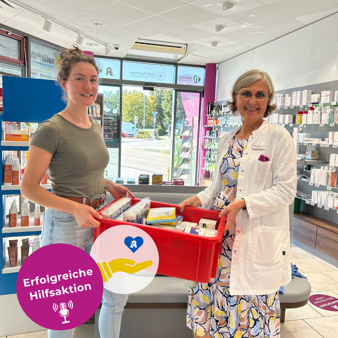 Stéphanie Haas-Komp ist so berührt, dass sie spontan eine mail in das SWR-Studio schreibt, die an Michael Walter weitergeleitet wird.📧 So entsteht ein netter Kontakt und Stéphanie Haas-Komp sichert das Sammeln von Medikamenten für dieses Hilfsprojekt für die Ukraine zu. Glücklicherweise findet sich Sophia, die Tochter von Freunden von Michael auf dem Rückweg aus der Berufsschule in Radolfzell in der Viola-Apotheke Volkertshausen ein und übernimmt die Kiste mit den wertvollen Arznei- und Verbandmitteln.