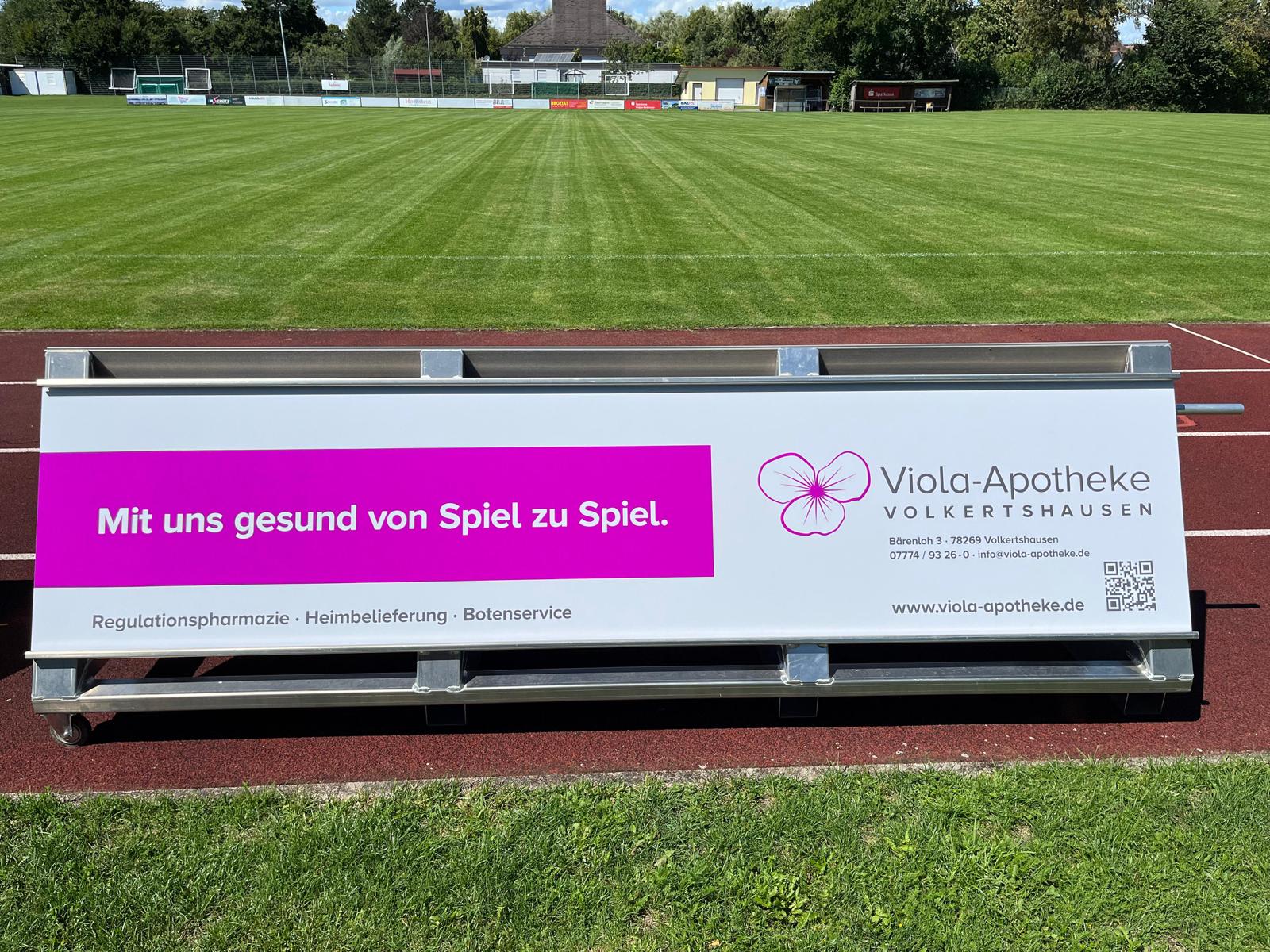 Und die neue Viola-Bandenwerbung auf dem Platz des SV Volkertshausen.
