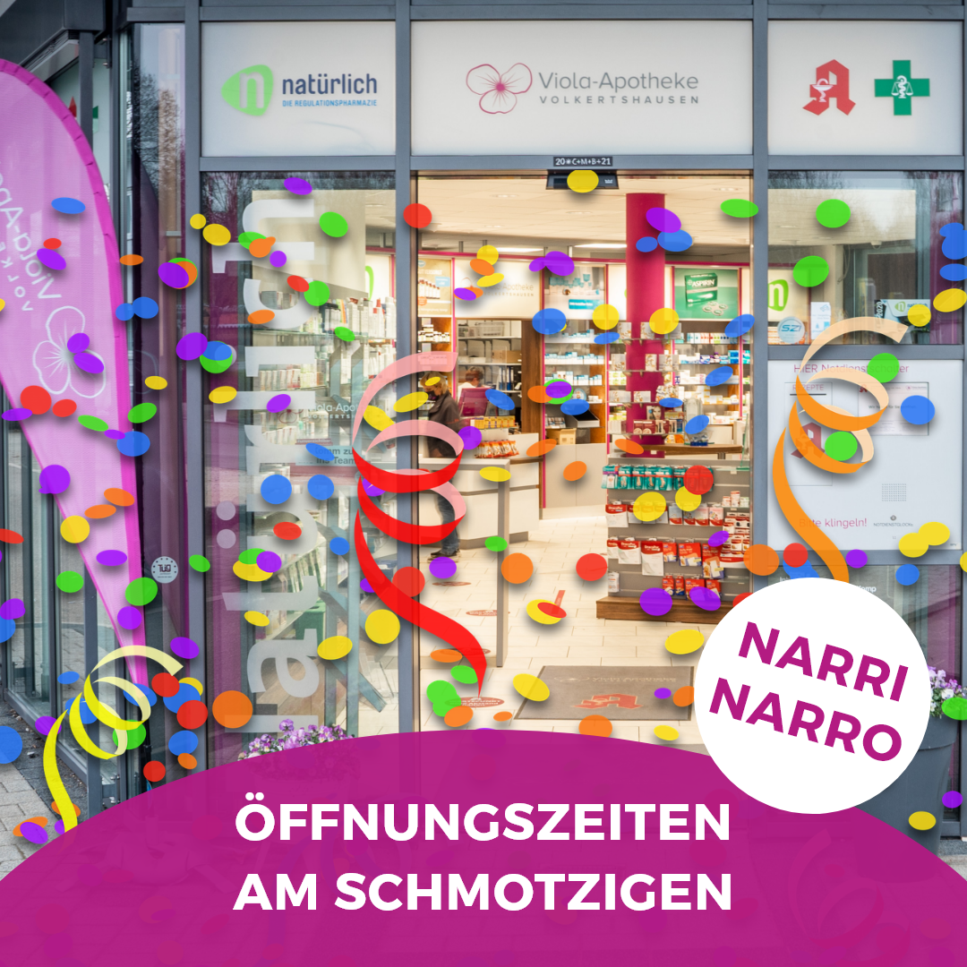 Wir haben von 8 Uhr bis 13 Uhr geöffnet und am Nachmittag geschlossen. An allen anderen Tagen der Fasnet haben wir ganz normal geöffnet. Narri Narro!