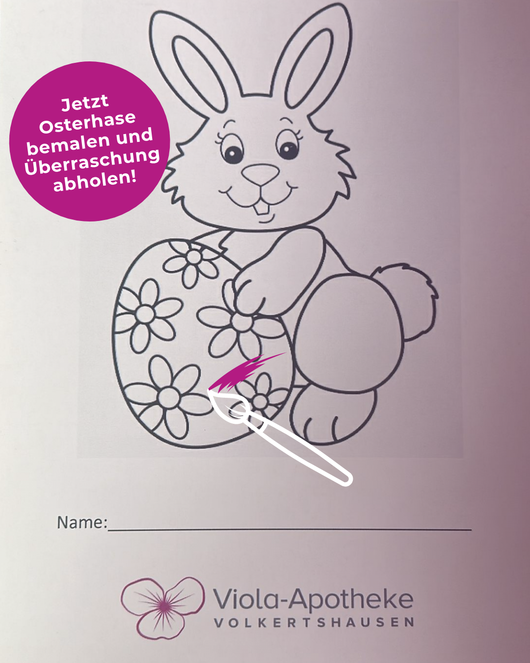 unser Osterhase in der Viola-Apotheke wartet auf eure bunten Farben!