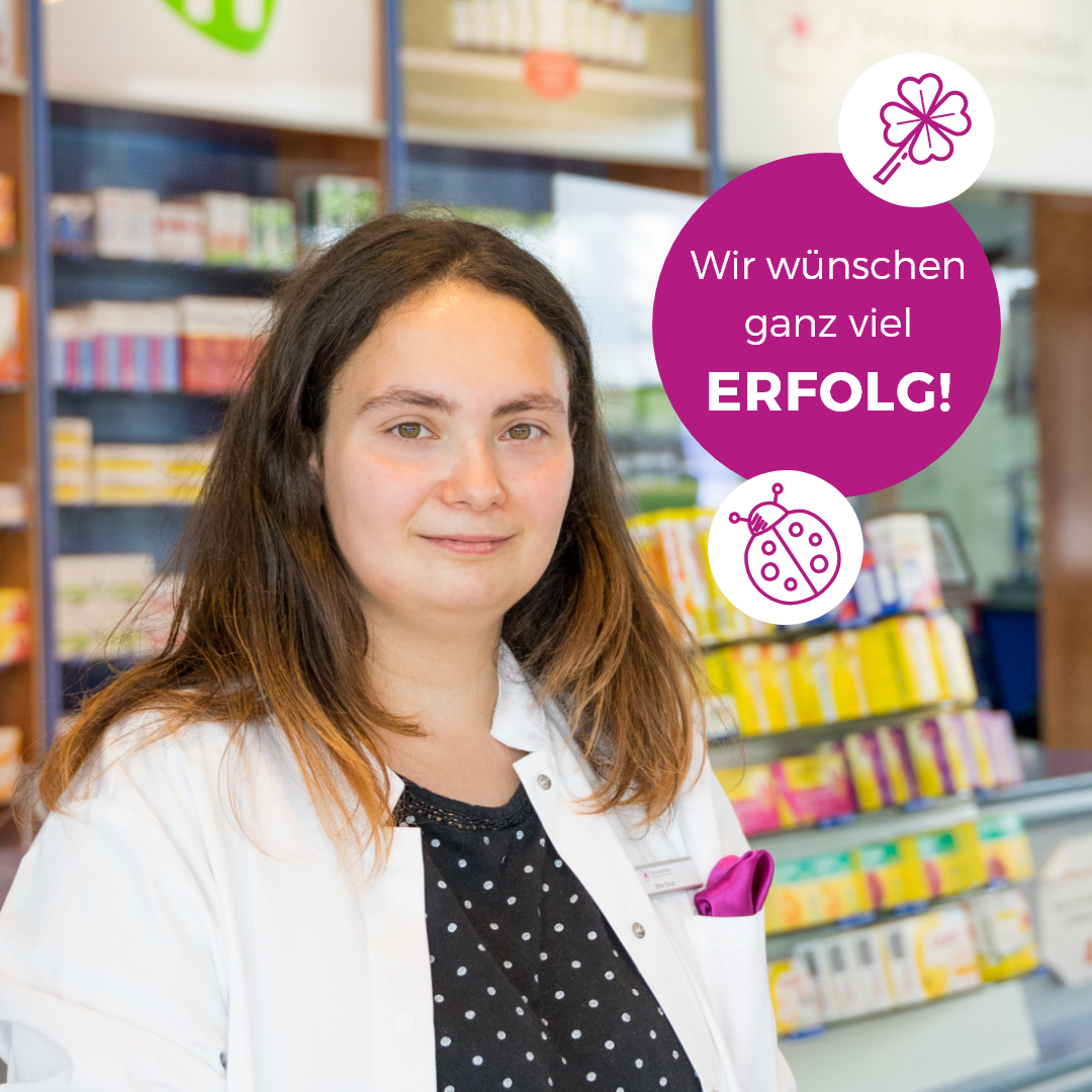 So auch für unsere Ebru Yavuz aus der Viola-Apotheke Volkertshausen, die seit fast 3 Jahren die Ausbildung zur PKA ( Pharmazeut.-Kaufmännischen-Angestellten) absolviert.