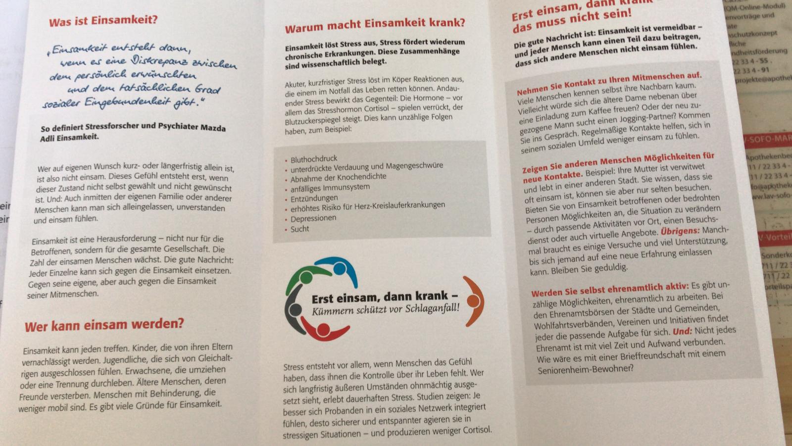 Schlaganfall-Betroffene sind besonders von Einsamkeit bedroht. Der Verlust von Mobilität und Sprachstörungen führen oft dazu, dass sie sich zurückziehen. Die Stiftung Deutsche Schlaganfall-Hilfe setzt sich für die Betroffenen ein. Sie hilft mit ihren Angeboten, Einsamkeit zu verhindern und somit das Risiko für Folge-Schlaganfälle zu reduzieren.