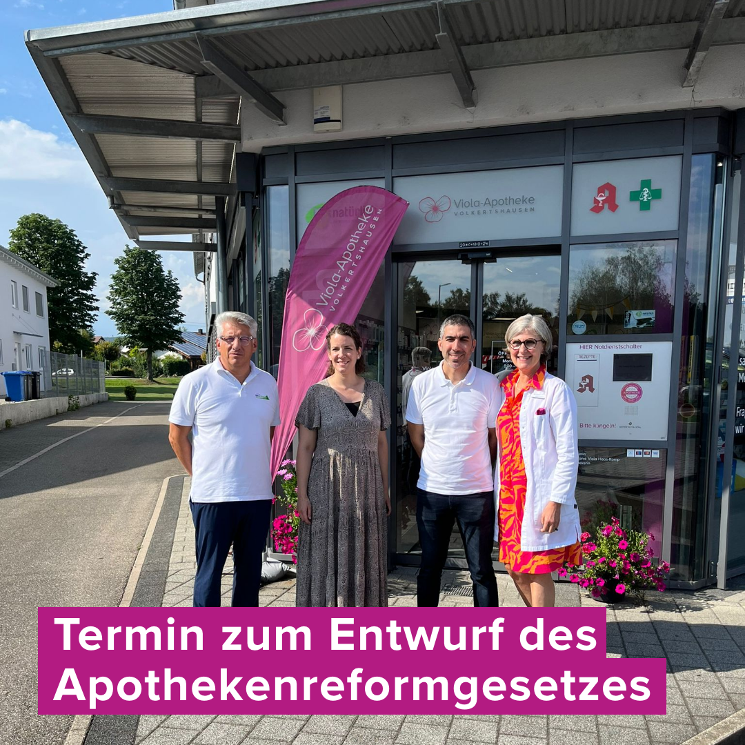 Toller Termin mit Frau Dr. Lina Seitzl, MdB, zum Entwurf des Apothekenreformgesetzes. Apotheker Murat Baskur aus Konstanz, Ariel Wagner aus Ludwigshafen und Apothekerin Stéphanie Haas-Komp, konnten Frau Dr. Seitzl in einer klaren Präsentation die katastrophalen Folgen dieses Gesetzentwurfes erläutern: die Medikamentenversorgung der Bevölkerung würde sich massiv verschlechtern, da die Anzahl der Apotheken in Deutschland sich weiter verringern würde.