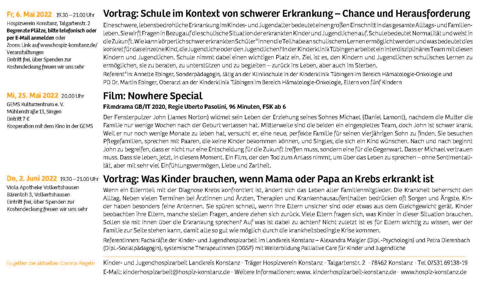 E-Mail: kinderhospizarbeit@hospiz-konstanz.de · Weitere Informationen: www. kinderhospizarbeit-konstanz.de · www.hospiz-konstanz.de